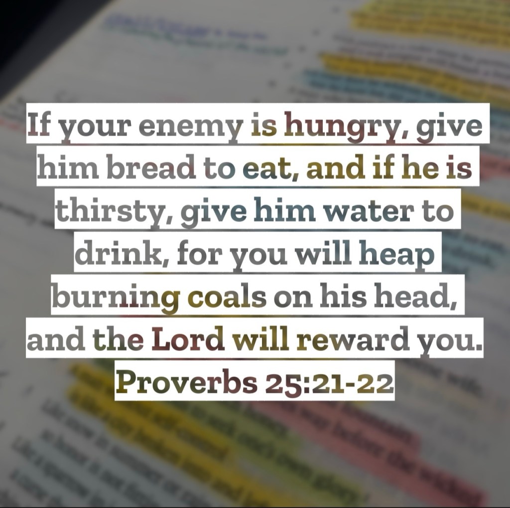 If your enemy is hungry, give him bread to eat, and if he is thirsty, give him water to drink,for you will heap burning coals on his head, and the Lord will reward you. Proverbs 25:21-22 – Such verses are likely familiar ones to you for we see them referenced in Matthew 5 and Romans 12 by Jesus and Paul. Whether it was King Solomon, the Apostle Paul, or our Lord Jesus Christ saying it, we must handle our enemy differently than the world tells us to. This mean not celebrating when a person at work that annoys you gets ripped into by the boss. This means not enjoying the sight of the person you can’t stand “getting what’s coming to them.” This mean offering food and water if that’s what will help them. It also can mean giving a helping hand up or a listening ear in their times of trouble. Yes, this is so countercultural to do, but isn’t most everything of Jesus countercultural? What we will see is that our “enemies” won’t know how to handle such kindness being shown to them by you. David Guzik said it wonderfully, “We can destroy an enemy by making them our friend.” Think about that, you can exist today without any human enemies, at least from your point of view, by posturing ourselves in a way that we will treat all people with love, forgiveness, and kindness, just like we would a friend. No, they may still hate you and consider you an enemy, but we don’t have to mirror that back in return. Show love and show kindness even to the ones who have hurt you and allow God to use that obedience to Him to reshape your enemy’s heart. I love you, but Jesus loves you more – Mac – Daily DEVO 2933