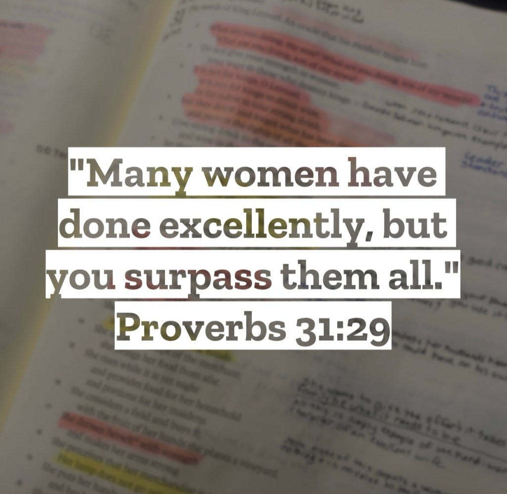 “Many women have done excellently, but you surpass them all.” Proverbs 31:29 – In chapter 31 we have a mother speaking into the life of her son seeking to help him think with his head, and not his flesh, when it came to the women in his life. She told him to pursue the excellent, virtuous women for his wife, and this proverb outlines much of what her character would be. Trustworthy, willing to work hard, smart, and wise. Able to take on the challenges that come, a blessing to her family, kind, and holy. She ultimately would be one that feared the Lord. When he would make his pursuit to find such a lady, he would be so blessed to have her and he would say the verse above, “Honey, you are amazing, and you surpass everyone else!” For the ladies reading this, note that this is not a passage that seeks to diminish the value or important of women, but is seeking to do the opposite. It is telling men that a holy woman in their life would change their life for the better in ways they would never imagine reaching on their own. Having such a wife would bring them honor, blessing, and would fill their lives with good. So ladies, seek to be such a lady even if a spouse is not in your story right now. Bring such honor and blessing to the family of God and the family God has given you at this time. Men, make sure the sort of lady your eyes are seeking after are ladies such as this passage speaks of. When you find her, treasure her like the precious gemstone she is, for she will bring more value to you than all the wealth in the world. Let us all remember though to be the ideal woman or man, it isn’t about anything worldly, it’s about fearing the Lord and following Him. I love you, but Jesus loves you more – Mac – Daily DEVO 2939