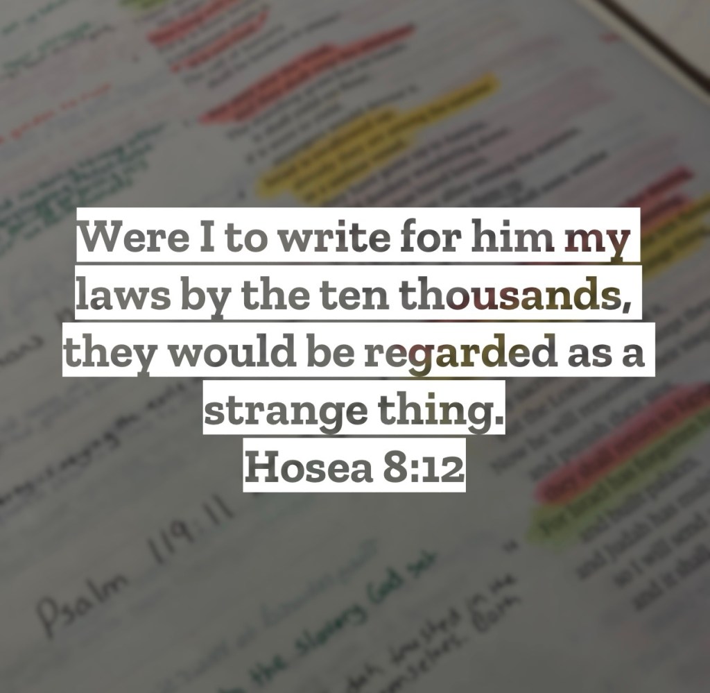 Were I to write for him my laws by the ten thousands, they would be regarded as a strange thing. Hosea 8:12 – Israel at this time had devoted themselves to the creation of many idols of silver and gold to worship and trust in for their protection. They followed the way of neighboring nations that knew not God and found themselves in a place where God said even to them He knew them not. Israel was His bride, but they were behaving like a wayward woman chasing after other lovers. In verse twelve we see the Lord saying that even if He were to give them His laws by the tens of thousands, meaning that His words to them would be perfectly clear and they would have no doubt in how to live faithfully after God, they still would reject it. The words from God would seems like a strange, unfamiliar thing because they weren’t familiar with God Himself. Such truth is repeated in 1 Corinthians 2:14 when it speaks about how the things of God don’t make sense, they are folly, to the person that does not know God. See then the connection, we can’t know God’s word without God. Even with the Lord, if we aren’t following Him, He could speak tens of thousands more pages of scripture to us and it still would be like a foreign language to us for we aren’t first seeking to know Him. God Himself is the lens to understand God’s word. Until we make that choice to live fully for God and to seek Him always, His word will just be a book that has no impact on our life. Choose to love the Lord, choose to be about His purposes today, and choose to seek to know Him more, and there God’s word will come alive and this collection of “strange things” will become a source of joy, peace, and life because you are taking in the words of the God who loves you. I love you, but Jesus loves you more – Mac – Daily DEVO 2947