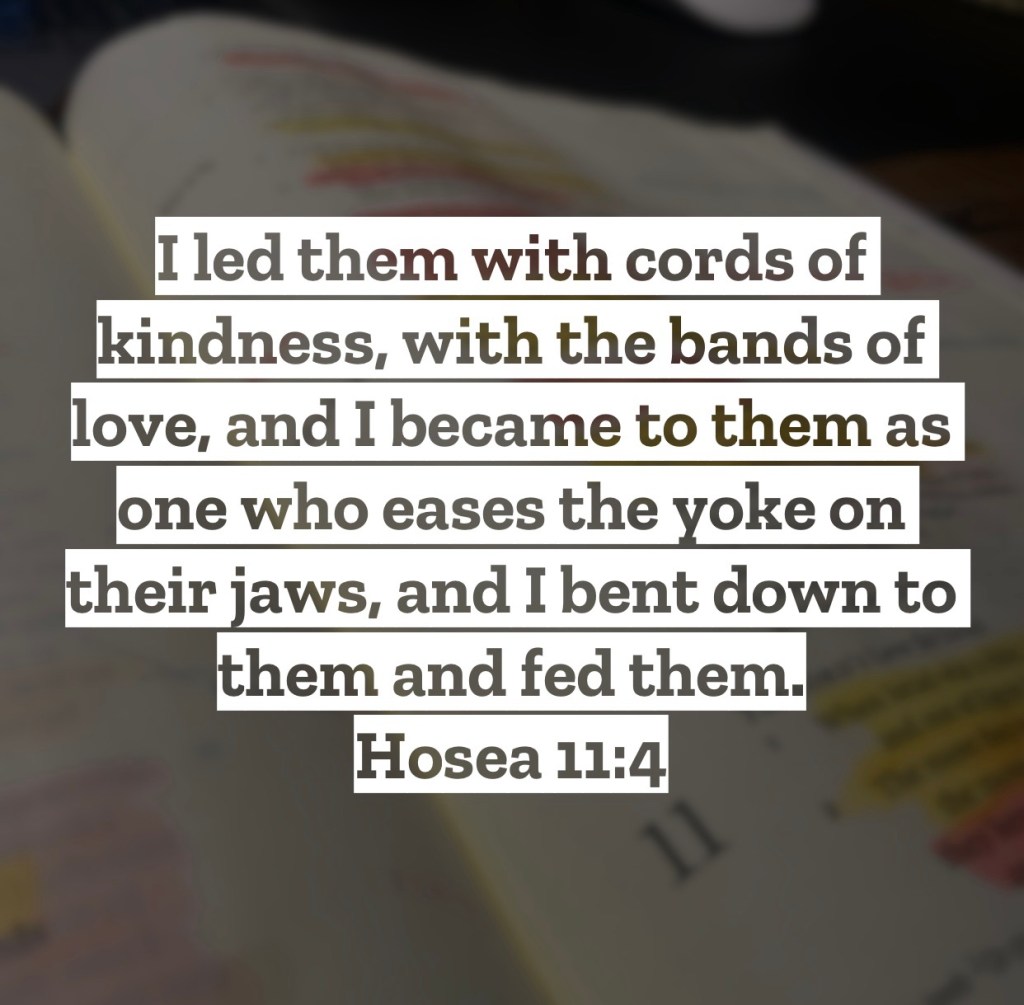 I led them with cords of kindness, with the bands of love, and I became to them as one who eases the yoke on their jaws, and I bent down to them and fed them. Hosea 11:4 – The language in this chapter feels different than the previous for we see the compassion of the Lord shine. The Lord remembered and reminds His people how it was Him who rescued them from the hands of Egyptian slavery. He compared His faithfulness and help to them like a parent gently holding a child’s arms so they can begin to walk for the first time. In verse 4 God says He led them, but not with whips like their previous slave masters, but with cords of kindness and bands of love. Meaning He went before them, guiding them forward gently, and encouraging their faithfulness after Him with kindness and love. What a picture for the people in Hosea’s day, and also a picture that works for us. God isn’t behind us with a whip forcing us to follow His ways. Our God instead has come before us, is walking ahead of us, and gently guiding and encouraging our following of Him. He invites us to follow with loving kindness, but He also allows us to reject the guiding cords. We can have God’s word and God’s help in our life, but chose to not listen and walk our own path. That “freedom” is available to us, just know such a path doesn’t lead towards freedom. Listen then to the gentle words and obey the gentle tug from the Lord. He is calling you out of love for you and desiring your best life, which is a life of following Him. Examine how God has guided you well in the past and examine where rejection of His ways has gotten you. Follow today the One who is seeking to lead you. I love you, but Jesus loves you more – Mac – Daily DEVO 2950