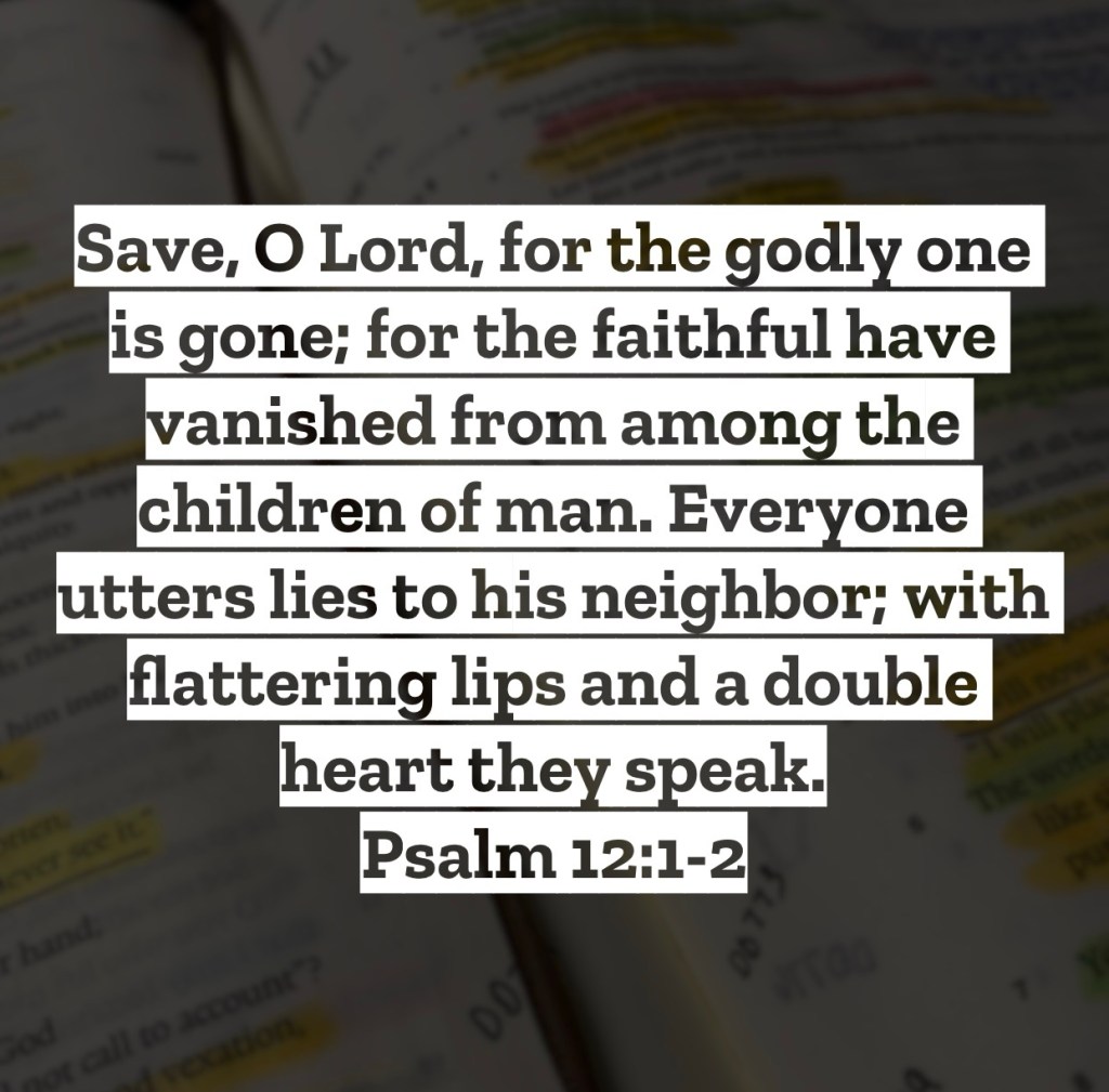 Save, O Lord, for the godly one is gone; for the faithful have vanished from among the children of man. Everyone utters lies to his neighbor; with flattering lips and a double heart they speak. Psalm 12:1-2 – We too can find ourselves in the lonely spot David felt he was in within this psalm. David was surrounded by people who were lying about him, gossiping about him, and using their words deceptively against him. When he then looked around for someone that spoke the truth and someone to support him in this ambush of lies he found himself in, he found no one. The godly supporters were gone and all that was left was the wicked men surrounding him who were berating him with their evil words. At this point David had to make a choice. Was he to crumble and let the words of these evil men destroy him, or would he rest in another’s word to find refuge? We see David turned to the pure and perfect words of the Lord. Such words reminded David that God will rise up on behalf of those in need and that He would guard David from such a wicked generation. Now my hope is you never find yourself in a beat down of words from people without any support coming your way from another person. If though you find yourself there, like David you do have a place you can turn. No, maybe no person in that moment is going to have your back or speak up for you or testify to your character, but you can have confidence that the Lord with rise up on your behalf. While those wicked words sting and hit deeply, God’s words are pure and last forever. His words will wash away the deceptive and hateful speech of those around you. When then you find yourself overwhelmed by the words of the world, step into a space of study of the word of the Lord to find the refreshment and relief you need. I love you, but Jesus loves you more – Mac – Daily DEVO 2967