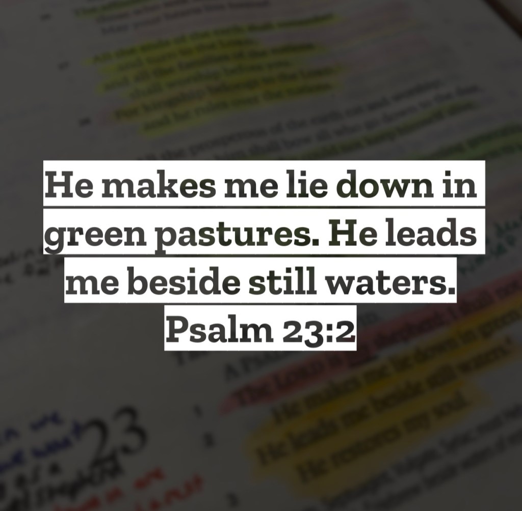 He makes me lie down in green pastures. He leads me beside still waters. Psalm 23:2 – The imagery in the psalm is beautiful to all who read it. God, as our Shepherd, is leading us to places of refreshment and rest, for in a sheep’s perspective, places of still waters and green pastures would be the ideal place to be led. For many of us today, such places of refreshment and rest is what we are longing for and praying for. We’re pleading with God to remove us from the season we are currently in and to finally take us to our green pasture. Yet notice something about the what the Lord did in David’s green pastures. Yes, God led David there, but God also had to make him lie down there. Sheep have a bad habit of resisting resting and may simply walk right past the fresh food and water it was led to by the shepherd. So maybe, just maybe, the reason why God hasn’t moved us yet from a season, is because that season is the green pasture He is making us lie down in for a while. Am I saying that the hospital room you’re in, or the heartache you’re in, or the family meltdown you’re is peaceful and you should get over yourself? Not at all, but if the Lord isn’t moving you from there like you’re praying for, and He is making you remain there, then know even there you can find green pasture and still water in Him. For the Lord is the same whether you are in a hospital bed or a luxury resort. He is our refreshment and rest. Wherever then the Lord has made you lie down, even if it’s in a place you desire to be out of, know in Christ the peace you are looking for can still be found. Whatever “green pasture” the Lord has you remaining in, know you can always find all you need in Him. I love you, but Jesus loves you more – Mac – Daily DEVO 2978