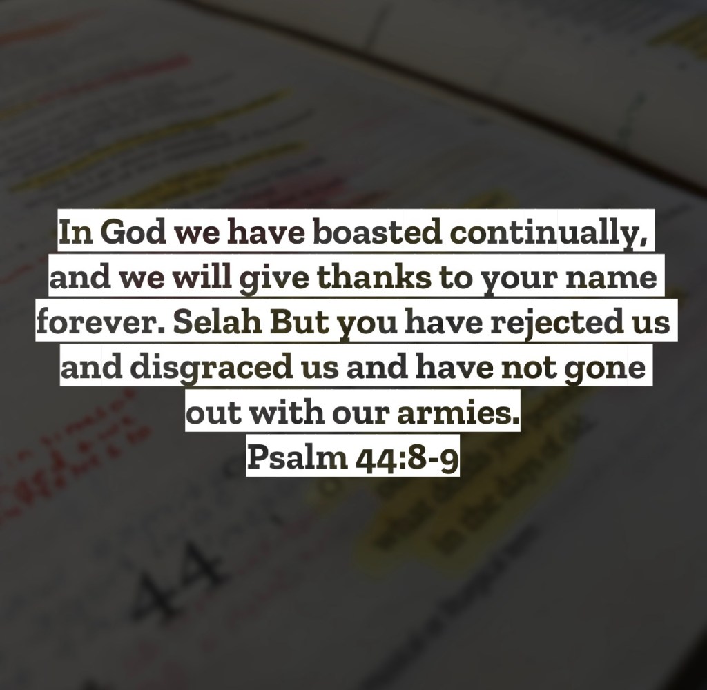 In God we have boasted continually, and we will give thanks to your name forever. Selah 9 But you have rejected us and disgraced us and have not gone out with our armies. Psalm 44:8-9 – While we aren’t certain on the exact time period this psalm was referring to, it’s clear Israel was in a state of defeat and despair. While being told of God’s wonderous deeds of old and how the Lord rescued Israel from so many enemies in the nation’s past, this current generation of Israel wasn’t seeing such salvation. While verse 8 seems to close on a high note of praise to the Lord, verse 9 till the end of the psalm tells of their anguish. They feel rejected and disgraced by God. They’ve been sold, made a laughing stock, and feel like sheep ready for the slaughter. While sitting in such a dismal state, their question of the Lord was, “Why are you sleeping!?” Why are you not moving on behalf of your people like you did before? This is an honest question they were asking of the Lord, and likely a question you have asked to. When we read scripture, or when we hear testimonies of others, and we see the grand ways God came through for them, it can cause us to question things because we may not be seeing the same level of grandeur in our life from the Lord. In those spaces, know the Lord is not sleeping on you. He sees and He knows what’s going on. While that might fuel the frustration even more, choose to trust that if He sees and He knows yet isn’t moving, there is a holy reason behind it. Our God doesn’t find joy in seeing His children in pain or navigating trials, but He will allow such things into their lives if the result is a closer walk with Him or the lost coming to know Him. Take heart then in your trial, know God is awake and with you and has His purpose in this. I love you, but Jesus loves you more – Mac – Daily DEVO 2999