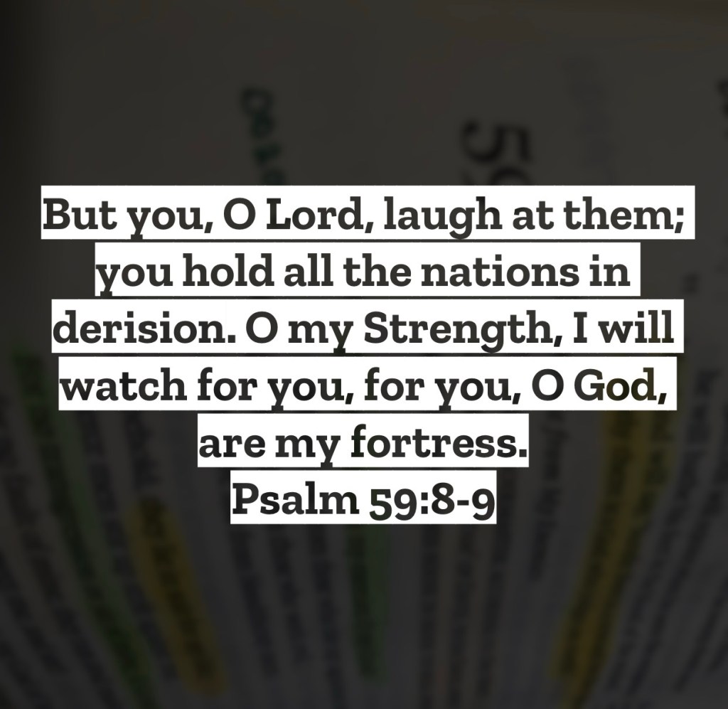 But you, O Lord, laugh at them; you hold all the nations in derision. O my Strength, I will watch for you, for you, O God, are my fortress. Psalm 59:8-9 – The season of David’s life that he is connecting this psalm to would have been a terrifying one for anyone in his position. In 1 Samuel 19:11-12 we learn that King Saul sent assassins to watch over David’s house and find the perfect time to kill him. Every night David would look out his window an see the assassins lurking in the shadows watching his every move, waiting for the perfect moment to strike. Could you imagine the weight of stress that would cause you! We see in the psalm this was a time of fear for David and a time he was pleading to the Lord for help. Our verse though reveals a powerful truth we must remember when the enemy’s assassins are lurking in the shadows around us. They are no match for the Lord. In our verses we see David remind himself that the Lord isn’t nervous about these enemies, in fact, He laughs are their measly threats. Think of someone charging a massive stone castle to take it down, yet with only a marshmallow gun. Everyone on the castle wall would be rolling on the floor laughing at these marshmallow soldiers for they have confidence their castle wall will remain perfectly fine through this level of attack. Let us keep this reality within our thoughts. The enemy is loud and scary and has a lot of force behind him, and his main goal is to tear people away from Jesus. While for us trying to stand alone, the enemy can do some damage, yet before the Lord, Satan is just a marshmallow soldier. God will be your strength and fortress when the enemy attacks. Under the Lord’s shelter of safety, not only do we need not fear the enemy, we can join in with the Lord as He laughs at the enemy’s punny attacks. Never forget how weak our enemy is compared to our great God. I love you, but Jesus loves you more – Mac – Daily DEVO 3014