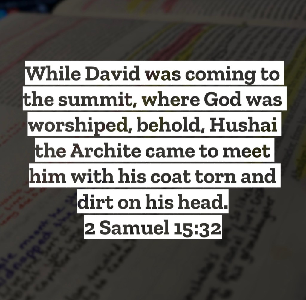 While David was coming to the summit, where God was worshiped, behold, Hushai the Archite came to meet him with his coat torn and dirt on his head. 2 Samuel 15:32 – David’s son Absalom in this chapter conspirers to take the throne away from his father. Under the pretense of going to worship the Lord he gathers a large group of people to help in this plan. The nation’s heart had gone to Absalom due to his years of pretending to be for them and his years of turning their hearts away from David. When David gets words of what’s happening he fled the royal city knowing that if Absalom was pushed, he’d turn the city into a warzone to accomplish his plans. Once again then in David’s life he is on the run, and in verse 32 we find him in on the Mount of Olives doing what we all should do in times like this, worshipping the Lord. Yet in times like this, when our entire life has just been flipped upside down, worship often isn’t the first response we give to the Lord. We may question God, we may doubt God, we may scream in anger at God, we may even walk away from Him. While David could have done all those things, instead he chose to find himself worshipping the Lord. Know this is a choice you can make to, and likely a choice you’ll have to make one day. For life isn’t always going to remain right-side up. We too will have life scrambled up and everything we took for granted may be gone and we’re in the same sort of situation like David. Our choice then will be to either hold all this against the Lord and turn from Him, or hold fast to our faith in the Lord and turn to Him. Don’t allow the loses in life to cause you to lose your faith in the Lord. Posture yourself in worship, even in the seasons when everything is stripped away, for the Lord is the One who will sustain you when all other things are gone from your story. I love you, but Jesus loves you more – Mac – Daily DEVO 3034