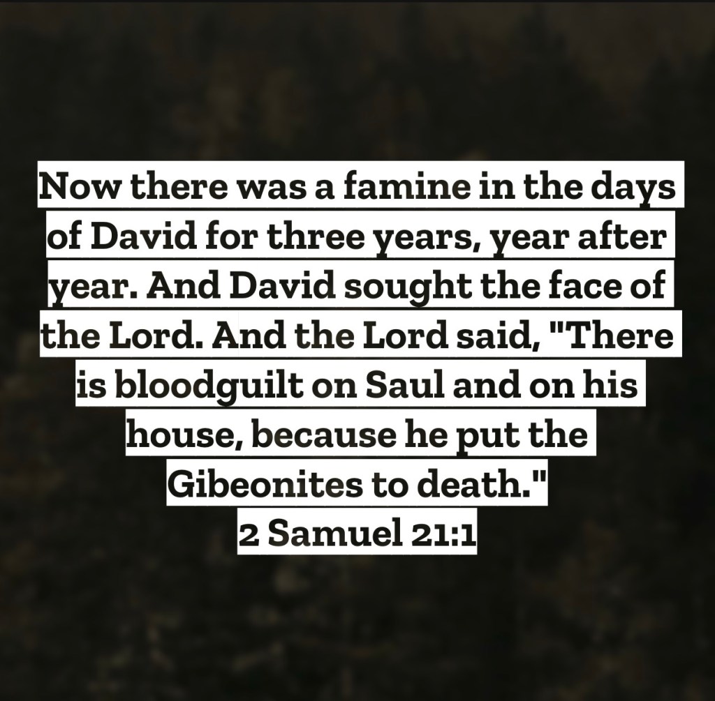 Now there was a famine in the days of David for three years, year after year. And David sought the face of the Lord. And the Lord said, “There is bloodguilt on Saul and on his house, because he put the Gibeonites to death.” 2 Samuel 21:1 - The situation David found himself in is outlined clearly in our verse. There was an extended famine in Israel, for three full years, long enough for David to recognize this was something not natural but a punishment from the Lord. He sought the Lord out on what was the cause of this supernatural punishment on the land and discovered it was because Saul had broken an ancient covenant with the Gibeonites. This sin of Saul was causing devastation for David and the whole land of Israel, long after Saul was dead and gone. Let’s never underestimate the damage sin can cause. So often when temptations to sin arise we minimize and isolate the damage that sin may bring so we feel more comfortable committing the sin. We say it won’t cause any trouble and we’re the only one it’s hurting anyway. Let though the stories we find in scripture open our eyes to the truth about our sin. Secret sins hurt many more people than just you. Sin can create scars that last in our story for a lifetime. Our sin can cause devastation in the lives of the innocent around us. Take the time today to take stock of the sin in your life that you may still be allowing to remain active and evaluate the damage it’s actually causing. Is it worth the hurt it will cause others? Is it worth the damage it’s actually causing in your walk with the Lord? Jesus made it possible for us to walk free from sin, let’s take the path He created for us. I love you, but Jesus loves you more – Mac – Daily DEVO 3040