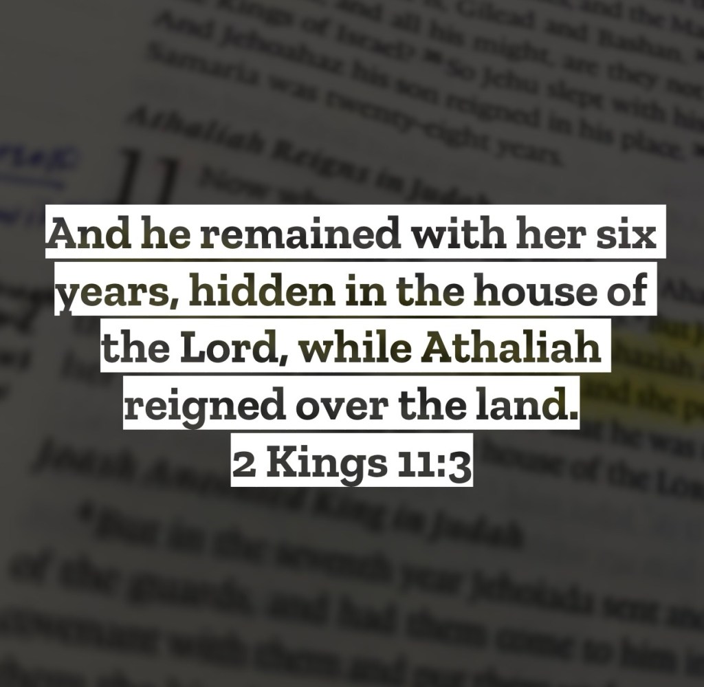 And he remained with her six years, hidden in the house of the Lord, while Athaliah reigned over the land. 2 Kings 11:3 – While there is a good amount of odd sounding names and good amount of background details needed to fully grasp what’s going on, here is a snapshot to help you get the fuller picture. Athaliah was the mother of the recently killed king of Judah. Hearing that her son was killed, she chose to kill everyone else in her family so she could take the throne, almost wiping out the line of David. Thankfully one small prince of the king’s family was secretly saved and eventually was made king, but as we see in the passage above, this murderous “queen” to hold of the kingdom for 6 whole years and no one stopped her. The question then is why? Why did no one try to stop her or stand in her way? Likely the people thought there was no other option. They believed she was the only one alive of the king’s family, so she was their only option to follow. Yet, there was another, and they just needed to become aware of the true king in their story. Such is the situation our world is in today. Many are following Satan and his sinful ways because they believe there is no other option. They don’t know about Jesus, the true king, and they aren’t aware that they can choose a different person to follow than Satan. That’s where we come in, we have the responsibility to tell them there is a true king in this story and they have a choice on who they follow. They aren’t trapped only following this sham of a “king,” for the true king, King Jesus, is alive and seeking followers. Follow Jesus and be about helping other people know the true King is on the throne. I love you, but Jesus loves you more – Mac – Daily DEVO 3077