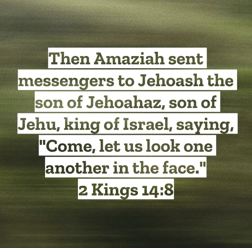 Then Amaziah sent messengers to Jehoash the son of Jehoahaz, son of Jehu, king of Israel, saying, “Come, let us look one another in the face.” 2 Kings 14:8 - Amaziah, the king of Judah, had just won a massive victory over Edom. He was able to gather 300,000 soldiers and took out 20,000 Edomites in battle. With the victory still fresh, Amaziah sent word to the king of Israel saying he wanted to now battle him. Spoiler, they went to battle and Amaziah lost. Yet his loss wasn’t just a loss in the battlefield, we see the loss extended far further into the kingdom. We see a large portion of the wall around Jerusalem was destroyed, leaving it open to attack. We see the king’s house and the temple were ransacked of all their silver and gold. Even hostages were taken from Jerusalem as a result of this loss. Something that isn’t always looked at is the collateral loss our pride brings. Yes we may be humiliated when our pride is humbled, but the loss can extend further than us. Our loves ones can feel the loss, our church can feel the loss, even people we don’t know can be impacted by our pride. If scripture is true, which it always is, then destruction will always follow a prideful heart. Choose then to walk in humility so the destruction of pride doesn’t have to reach you nor extend beyond you to others. I love you, but Jesus loves you more – Mac – Daily DEVO 3080