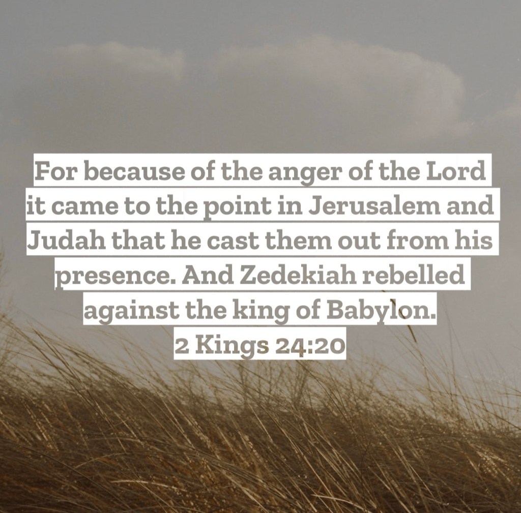 For because of the anger of the Lord it came to the point in Jerusalem and Judah that he cast them out from his presence. And Zedekiah rebelled against the king of Babylon. 2 Kings 24:20 - Under the original covenant God made with His people, it was a if/then sort of agreement. If they would obey His commands and follow Him, then God would bless and protect them. If though they rejected God’s commands and refused to follow Him, then they would find persecution and loss. What we find in our chapter is the final straw of God’s longsuffering and patience with Judah. They had turned to sin so intensely and for so long, despite all the prophet’s warnings God sent them, that it was time for them to feel the weight of their choice. Let us though today praise the Lord that we are under a new covenant through Jesus Christ. No longer is it the original if/then deal with God. Jesus is our righteousness before God. Our relationship with God is no longer based on our holy actions but based on the holy sacrifice of Jesus. We don’t have to fear God casting us out like we see in this passage for Jesus has secured our position with the Father. Today cherish the truth that because of Jesus every sin is forgiven, our future of Heaven is guaranteed, and our peace with God is eternally secured. All this is true for those who place their faith in Jesus, and if that hasn’t happened yet in your story, know today can be the day your life with Jesus begins. I love you, but Jesus loves you more – Mac- Daily DEVO 3090