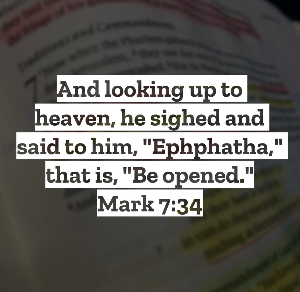 And looking up to heaven, he sighed and said to him, “Ephphatha,” that is, “Be opened.” Mark 7:34 – A man that couldn’t hear and couldn’t speak well was brought to Jesus for healing. Jesus, willing to heal him, pulled him aside and began the process of this man’s healing. We see that Jesus, right before giving the wonderful command that opened this man’s ears and mouth to finally work properly, Jesus looked up to heaven…and sighed. That’s a unique phrase to see in this moment of healing. Why did Jesus sigh? First because the ministry of healing was an exhaustion for Him mentally and physically. We see Him often seeking out times of isolation and rest after long stents of healing people. We also though see the heaviness on Jesus’ heart when He sees right in front of Him the effects of sinfulness. Deafness wouldn’t be in the world if sin never entered in. Speech impediments, leprosy, disease, wounds, and demon possessions would have never been a part of humanity’s story if sin wasn’t a part of the story. Sin though is a part because of our choices. Jesus is seeing all this around Him this day and seeing the effects of sin, and the weight of all that causes Him to sigh deeply before this healing. Does our reaction to sin and its effects on people cause us to sigh like this too? Are we grieved by the results of sin in our world? Or if we’re honest, are we finding pleasure still from avenues of certain sins? While I’m not encouraging you to find yourself in an unsafe place, I’d encourage you somehow to find yourself witnessing the impacts of sin in this world. Maybe its walking through a hospital, maybe its driving through your downtown area, maybe its watching a history documentary of the Holocaust. When you witness the brokenness, the loss, the death, and the evil, my hope is your reaction is like Jesus’…a heavy sigh…and then doing the work of the Father immediately afterward to bring His healing into this world. I love you, but Jesus loves you more – Mac – Daily DEVO 3098
