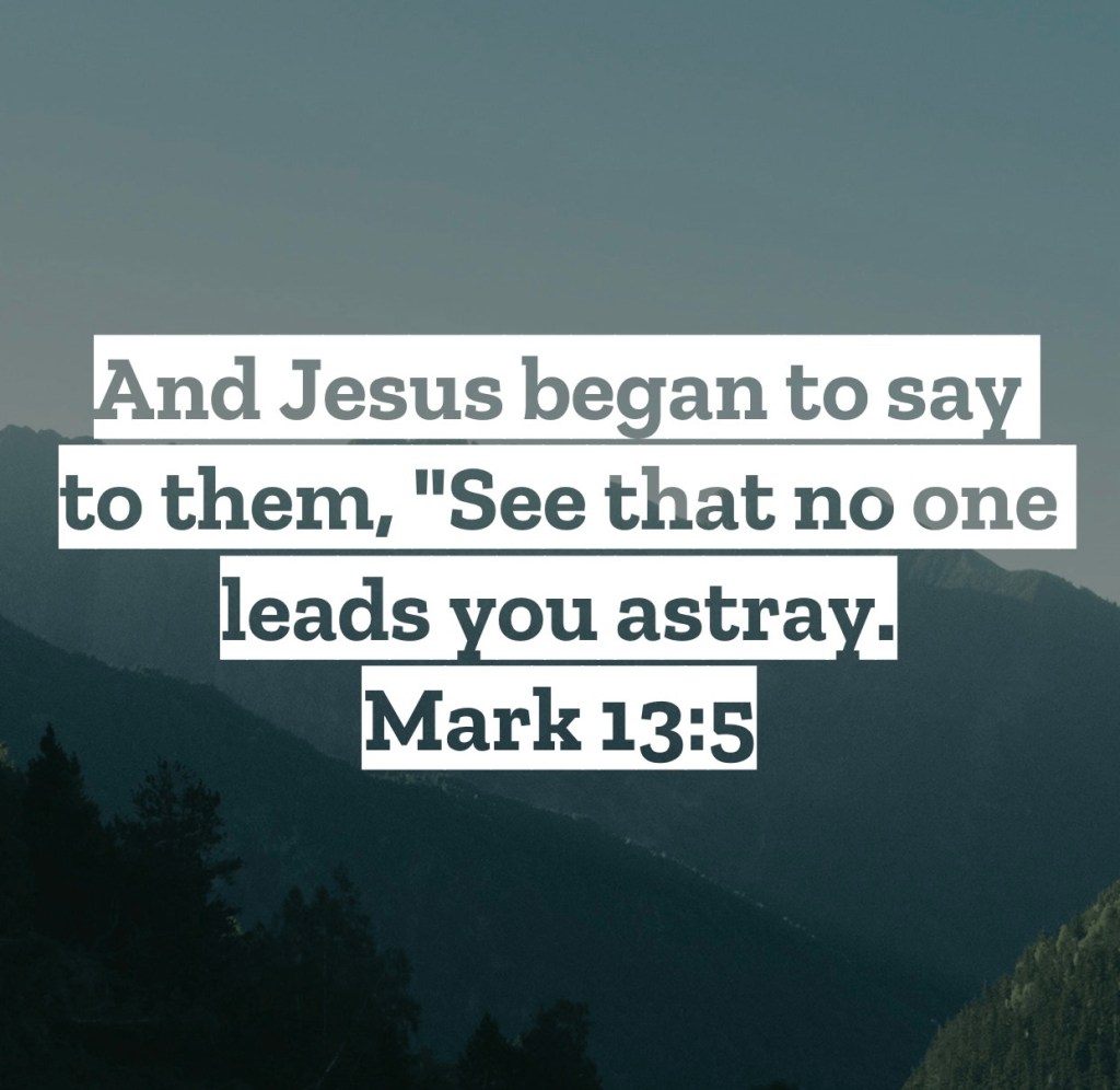 And Jesus began to say to them, “See that no one leads you astray. Mark 13:5 - For guys who have been struggling to understand the most basic of parables and who were worrying about having enough food to eat immediately after Jesus fed the 5000, hearing the words of Jesus in the chapter must have been overwhelming. Jesus goes deep into what was, and still is, to come. We see talk of the antichrist, the tribulation, and Jesus’ glorious return. We see Jesus talk about all the things that are going to unfold on the earth before He returns, and it’s not pretty. While likely an overwhelming message to take in, Jesus words at the start truly set the tone. Don’t let anyone lead you astray. That in the unfolding of all that God has promised will happen, there will be many whose sole purpose is to get people to stray away from their faith in the Lord. While we can certainly understand the importance for us personally to not stray away from the Lord, we must understand too how essential us remaining steadfast for Jesus in these times are when it comes to other people. For Jesus is returning, and we need to be introducing people to the salvation He can give them. Yet if we are “led astray,” having our heart not about the Lord and people following Him, then people will not hear the message that will save them from the coming doom. When we’re lead astray, people will be walking to their death…so be sure no one leads you astray. We are living in the end times, waiting for Jesus to return. Don’t let sin or the enemy turn your heart away from the Lord. Too many people need Jesus for us to be led astray. Stay on track and stay protected from the workings of the enemy on your life. I love you, but Jesus loves you more – Mac – Daily DEVO 3104