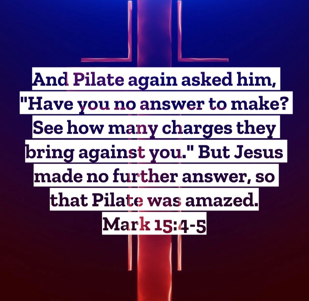 And Pilate again asked him, “Have you no answer to make? See how many charges they bring against you.” 5 But Jesus made no further answer, so that Pilate was amazed. Mark 15:4-5 – Good Friday has passed but today is a Friday and it is good because of the events of our chapter. Mark 15 is this gospel’s retelling of the trial, beating, crucifixion, and burial of Jesus. During the trial with Pilate many of the religious leaders of Jerusalem made serious charges against Jesus. Other gospel accounts outline some of them out: that Jesus was starting riots, that He was telling everyone to stop paying Roman taxes, and that even He was displacing Caesar as king. Pilate, fulfilling his duties, asked Jesus if He had any defense to make against all these serious accusations. Jesus’ response? As we see in our passage above, He remained silent, and this amazed Pilate. For this was the time and place in the trial for the accused to give their defense. Pilate was used to seeing people grovel and beg and likely come up with fantastic stories of how they were innocent to avoid punishment. Yet Jesus remained silent at that time, refusing to grovel or even defend Himself. Why? Because He wasn’t trying to get out of what was to come. He knew what the Father’s will was, and it was for Him to die on the cross for the sins of the world. He chose to let the accusers lie and defame him and get their “victory” of executing this rouge teacher that was stealing away their way of life. And He did all this for us. So yes, today is a good Friday, for we have a Savior named Jesus who bore the shame of the cross for us so we could have the blessing of being children of the Most High God. I love you, but Jesus loves you more – Mac – Daily DEVO 3106