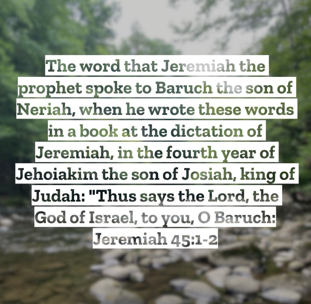 The word that Jeremiah the prophet spoke to Baruch the son of Neriah, when he wrote these words in a book at the dictation of Jeremiah, in the fourth year of Jehoiakim the son of Josiah, king of Judah: 2 “Thus says the Lord, the God of Israel, to you, O Baruch: Jeremiah 45:1-2 – Baruch was the scribe Jeremiah used for most, if not all, of his writing down of the prophecies the Lord gave him. Baruch was used to writing down the hard words of the Lord to the people of Judah, for that is much of the book of Jeremiah. What Baruch likely wasn’t expecting was to begin writing words of the Lord meant specifically for Baruch himself. We too can get used to telling others the words of the Lord. We can tell them all about the ways God loves them and even tell them all about how their sins are wrong. Yet when the word of the Lord is instead directed at us, it’s not so easy to accept. We don’t like to hear that we are in the wrong with sin and that we need to take the proper steps away from our sin. We may struggle to accept the truth that we are loved by God and wanted by Him. Yes, that works for other people, but when said to us about us, it not so easy to embrace. Like in Baruch’s situation, know the Lord is going to use you to proclaim His words to others. Just know the Lord will also use you to proclaim His words to yourself as well. His words are for the wayward sinner, that brother in Christ at church, and even the person sitting in the seat you’re sitting in right now (you). Be willing to share God’s words with others but also be willing to share it to yourself. I love you, but Jesus loves you more – Mac – Daily DEVO 3275