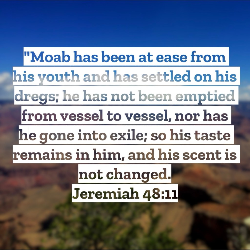 Moab has been at ease from his youth and has settled on his dregs; he has not been emptied from vessel to vessel, nor has he gone into exile; so his taste remains in him, and his scent is not changed. Jeremiah 48:11 – In making wine at this time in history they would place the wine in vessels and allow it to sit for a time. This would allow the dregs, any impurities (think like coffee grounds in your coffee cup), to settle in the bottom of the vessel. Then they’d pour the wine out of the first vessel into a new vessel, but carefully as to not disturb the dregs that had settled in the bottom. The picture we are getting of Moab is that it had been sitting for a long time with its impurities. Instead of being poured out like it should have, now the impurities had begun to change its taste and scent into something sour. This nation, due to its remaining in its sin, had been utterly spoiled, and God is telling them that their vessels are going to now be poured out and broken. As with the wine makers in Jeremiah’s day, so does God have methods of removing the impurities from our life. Jesus of course is the one who forgives our sin, but He also has given us means of keeping sin from tainting our life. Things like church community, daily time in scripture, and other spiritual disciplines. As we take part in such things it has the same effect of the gentle pouring of the wine into a new vessel. Slowly the sin that loves to settle in our life becomes less a part of our life till it no longer is active in our story anymore. Yet when we refuse God’s means of “removing the dregs” then the dregs remain ruining our life. Lean into the means God has given to remove the pathways to sin in our life. Sin no longer has to change you for the worst anymore. I love you, but Jesus loves you more – Mac – Daily DEVO 3278