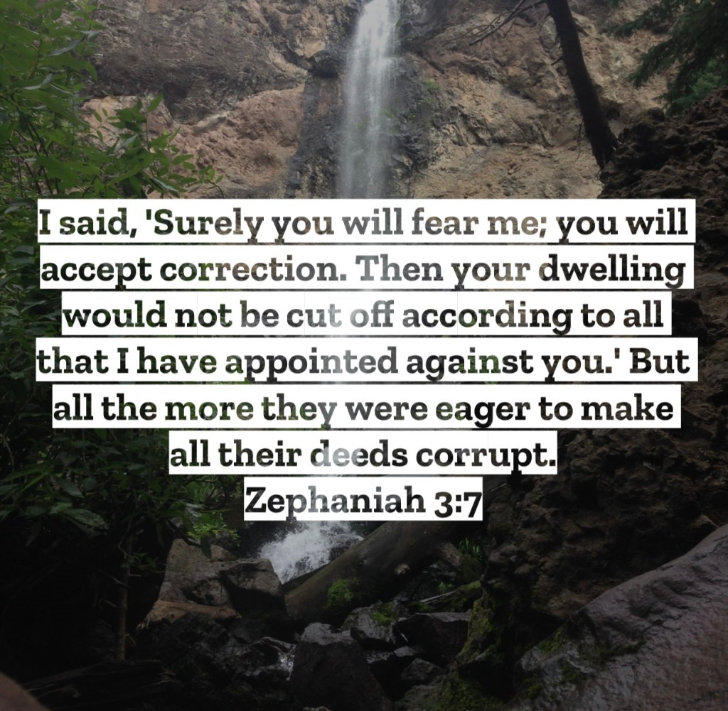 I said, ‘Surely you will fear me; you will accept correction. Then your dwelling would not be cut off according to all that I have appointed against you.’ But all the more they were eager to make all their deeds corrupt. Zephaniah 3:7 - God was watching over Jerusalem and was seeing how far into sin they had gotten. His people stopped listening to Him, stopped accepting correction from Him, and even stopped drawing near to Him even though He was seeking nearness with them. To get His people’s attention, the Lord displayed His power over the surrounding nations, hoping they’d learn how God handled nations that refuse to repent of their sin. Yet instead of responding in their own repentance after seeing God’s wrath on other nations, God’s people sought to make their deeds even more corrupt. How do you respond when you see the Lord begin to bring justice to the sin in the world around you? When people face the consequence of their action, does that steer you away from your own sinfulness? In the case of Zephaniah’s hearers, they saw God bring judgement on other’s sins and chose to go deeper into their own sin. How about you? The Lord’s desire is that you’d repent of your sin, and as you see the consequences of those who refuse to repent that it would push you to your own repentance even harder. God does not enjoy bringing His wrath, but He will. Let’s offer Him a heart that responds faithfully to His leading and turns from the sin that is hurting us. I love you, but Jesus loves you more – Mac – Daily DEVO 3318