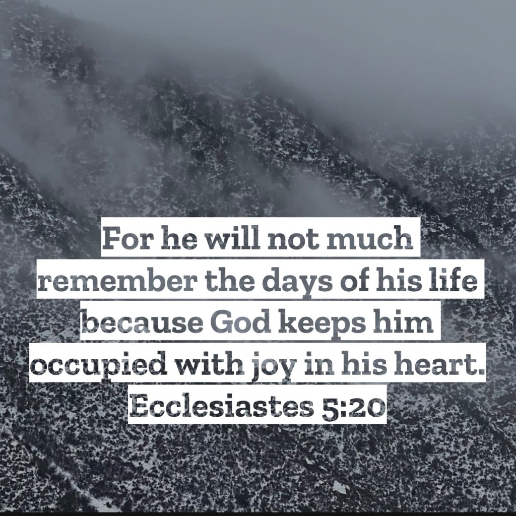 For he will not much remember the days of his life because God keeps him occupied with joy in his heart. Ecclesiastes 5:20 – While we are seeing Solomon speak about the Lord in this chapter quite a bit, keep in mind that he still is working with an “under the sun” mentality. Meaning all that matters is what’s happening in this life, not what matters in the life to come. Solomon is still seeing the meaninglessness of everything in this life with this “under the sun” mentality. In this chapter we see him speaking to the wealthy and showing how pointless wealth really is. Wealth can be lost in an instant, wealth can destroy you if kept with clinched fists, and the more wealth you have the more responsibilities you have to worry about too. Certainly true and wise words from Solomon, who had more money than he could ever spend, yet he still gave this further advice. To eat, drink, and find as much enjoyment in this life with whatever you do have for there is nothing beyond it. As our verse above says, just keep busy with the pleasures so you don’t remember the pointless nature of this life. What a depressing way to exist, just to do whatever you can in this world to block out the thoughts that there is nothing beyond it. Yet God isn’t about that sort of life. God longs for us to acknowledge the eternal aspect of our lives. Everywhere in scripture we are reminded that there is more to this life than what this world has for us. All throughout creation God is revealing and reminding us that life is more than just this life. The enemy would love for you to focus on blocking out the reminders of your eternal nature, but God’s heart is for you to dwell on it constantly. Your life is more than this life on earth, don’t let the things of this world keep you from seeing that truth. I love you, but Jesus loves you more – Mac – Daily DEVO 3390