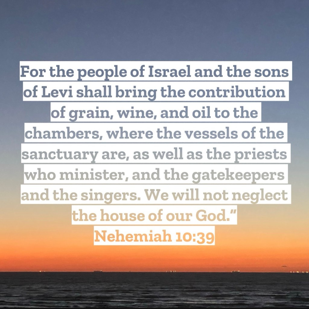 For the people of Israel and the sons of Levi shall bring the contribution of grain, wine, and oil to the chambers, where the vessels of the sanctuary are, as well as the priests who minister, and the gatekeepers and the singers. We will not neglect the house of our God. Nehemiah 10:39 – God’s people in Nehemiah’s day decided to make an oath to the Lord. They were choosing to step into a covenant relationship with God again. This meant the things that God said not to do, they would stop doing, and the things God said to do, they would do. This also meant that all the aspects of the work of the Temple would become a priority again to the people. Whether it was donating wood for the altars to oil for the lamps or even money to support those who dedicated their lives to the Temple work, they were no longer going to neglect the house of their God anymore. That line at the end of the chapter is so wonderful, “We will not neglect the house of our God.” I pray this is at the heart of the church today, that their desire is to not see the house of the Lord neglected today. What then could that practically look like for us today. Understand what, or who, is the house of God today. We, the people of the church, are the house of God for His Spirit dwells within us. How then can we not neglect the house of the Lord today? Prioritize it’s health. Make sure you are staying spiritually healthy by being in the Word and being with other believers. Make sure your church family is healthy by pushing for reconciliations and serving them with your giftings. There is no longer a Temple building we’re trying to maintain, the Temple is now us the people of the Church. As dedicated as the people were in Nehemiah’s day to the upkeep and longevity of the Temple, let’s be dedicate to the long life and health of the house of the Lord today. I love you, but Jesus loves you more – Mac – Daily DEVO 3407