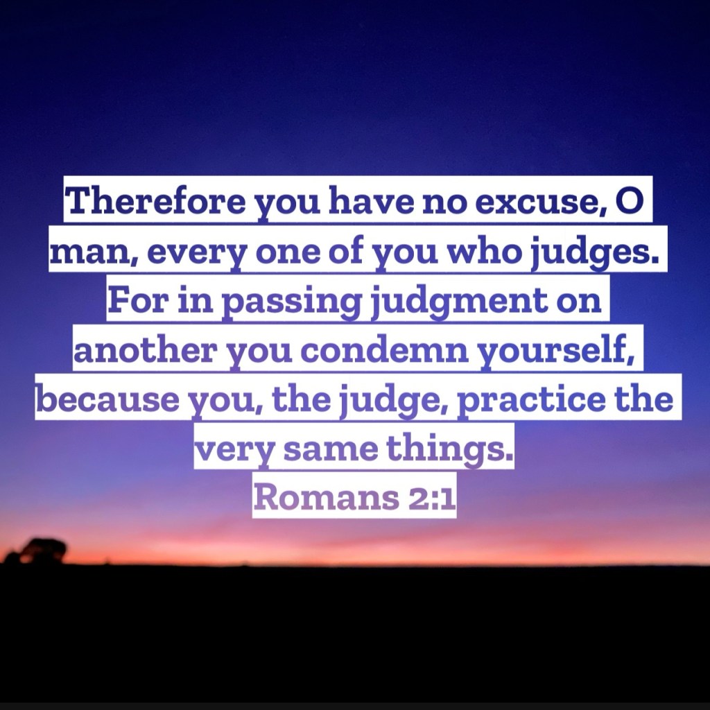 Therefore you have no excuse, O man, every one of you who judges. For in passing judgment on another you condemn yourself, because you, the judge, practice the very same things. Romans 2:1 – After making a long list of sins in chapter one such as murder, inventors of evil, and gossiping, Paul redirects the focus of his message to those listeners who saw themselves as “good” and looked down on the people who committed the sins of chapter one. These “good” individuals saw themselves as right with God due to their refusal to do such horrible sins as other people did, but Paul checks their heart by telling them a truth they likely didn’t want to hear. When they passed condemning judgement on those sinners around them, Paul tells them that they condemned themselves because they practice the same things. This isn’t meaning that they practiced the exact same sins, but that they practiced sin just like the people they were condemning. Christians must understand that in the Lord’s eyes all sin has an equal level of severity and punishment. Certainly our sinful actions can have different levels of impact on those around us, for if I murder someone it’s going to affect people more than if I worry about something. Yet in seeking to stand before a righteous God even just one sin, either murder or worry, is enough to cast us far from His throne. This was Paul’s message to these “holy” listeners. Their sin of condemning pushed them far from God just as the murderer’s sin did for them. In our life take time to remember the cost of sin was Jesus’ death on a cross. Whether it was the grandest sin you can think of or something simple a child would do, it equally sent Jesus to the cross. Let’s not cast judgement then on those in sin when we to have sinned just as they have. Instead introduce them to the Savior who forgives all types of sin. I love you, but Jesus loves you more – Mac – Daily DEVO 3425