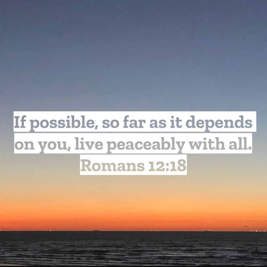 If possible, so far as it depends on you, live peaceably with all. Romans 12:18 – Live at peace with everyone in your life. If that was the fullness of this command then we’d all be living in opposition to this command of scripture. For even if we stayed in that position of always seeking to live at peace with everyone, we have no control how the people around us are going to behave towards us and if they deem we are at peace with them. Thankfully the command of scripture isn’t as straightforward as we must be at peace with everyone. Certainly our aim ought to seek out reconciliation wherever that is needed and to give apologies whenever that is needed. As far as it is up to us on our end of the relationship we are commanded to seek peace with all, and that is where the “so far as it depends on you” comes into help us remain faithful. You can’t control if people will accept your apologies and you can’t make someone reconcile if they refuse to do so. Meaning there may be situations where we are not going to live at peace with people because the other person is refusing peace. In that situation, God calls us to do everything on our part to be at peace with them, and if they refuse our efforts that’s not on us but them. So yes, thankfully we have that “out” of having to be at peace with everyone since we can’t control their responses…but we must remember we are still called to pursue peace with all as far as our efforts can take us. That means we must say the apology even when we don’t want to and that means we must have that difficult conversation even if we’ve strategically avoided it for years. If the reason we are in tension and brokenness with someone is because of our refusal to pursue peace with them, know that sin is on us and a change needs to take place. I love you, but Jesus loves you more – Mac – Daily DEVO 3435